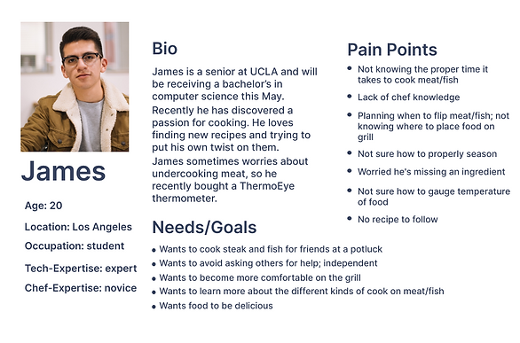 James Lee plans to attend a potluck with his friends for the football game this upcoming weekend. James plans to utilize the grill at his friend's place to cook a steak. Since James doesn't have much experience grilling, he opens ThermoEye to look at recipes and gather the correct ingredients.